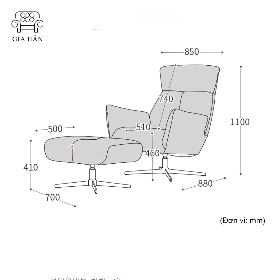 dài: 85cm, rộng: 88cm, cao: 110cm, độ cao mặt ghế: 46cm, lưng tựa: 74cm, độ rộng mặt ghế 51cm