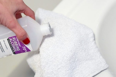 - Đổ cồn vào chai xịt sương, sau đó xịt quanh bề mặt vết bẩn trong vài phút