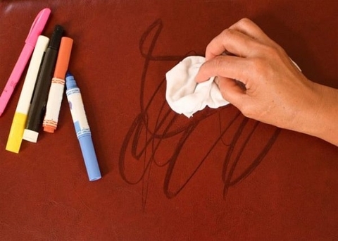 Sofa da dính mực, xử lý bằng khăn ẩm
